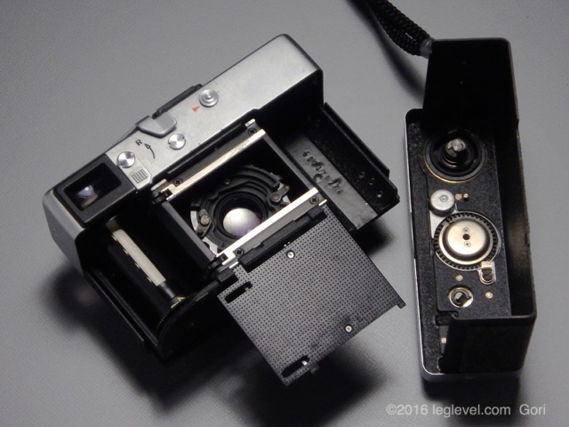 カメラを正面から見てレンズの左上にある丸い部分が露出を計る部分なのですが、ここから内部が見えますw