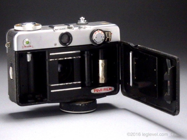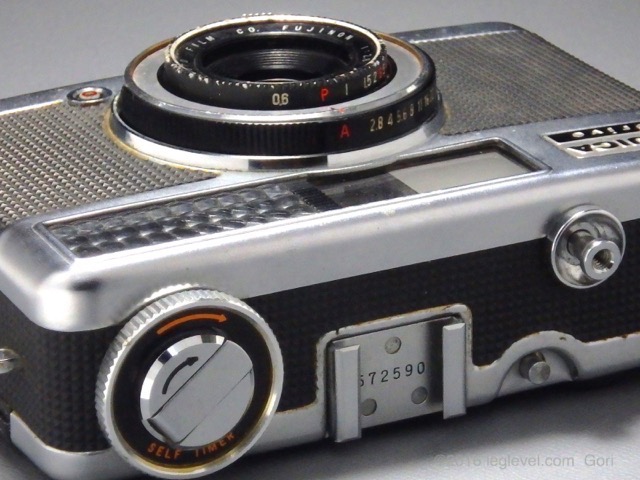 目測ならば、フィルム面のマークでも付いてれば正確に測ることも出来ますが…、そこまでの正確さを求めるカメラではないのでしょう、開発した方の力の入れ具合が判りやすいですね、たぶんお手軽撮影をこのカメラに求めたのでしょう、露出はPのプログラムモードがあるのですからね。ただこれ絞り優先オートもできるのでしょうか?だとしたらかなり優れたカメラですね、電池を使わずにプログラムオートや絞り優先オートでの撮影ができて、スプリングドライブを使って自動巻き上げも出来るというコスパに優れ、コンパクトで手軽なカメラなんですね〜、あとX接点もあるんでストロボも使えますね!