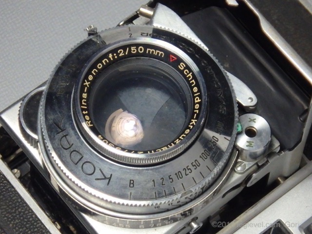 手元にあるこのカメラは後期型のようでシャッターユニットがMX接点付きのシンクロコンパーになってます。レンズは『Retina-Xenon(レチナ・クセノン)50mm F2』が装着されています。
