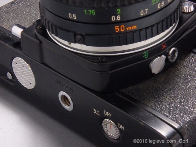 外見上の違いと言えば、アクセサリーシューがホットシューに変更され、ミラーアップレバーが無くなり、XとFPの接点が1つになり切り替えレバーが代わりに付いてますが、配置的には元々空いてる穴にレバーをくっつけた様ですね、あと、軍艦部の筐体の角が『SR-T SUPER』の方が角ばってますね、『SR-T101』は絞られてますね、ほんの些細なことですが(^_^;)