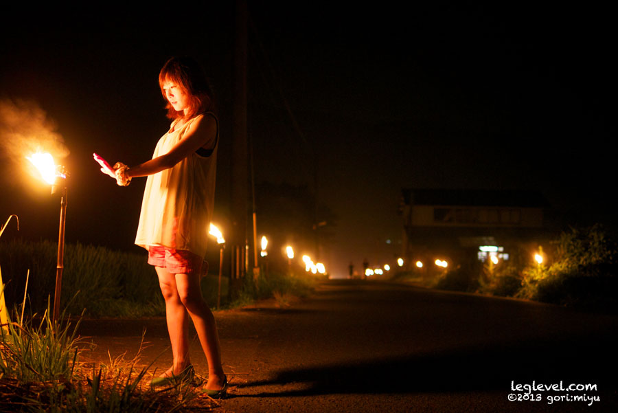 しかし、土手や道ばたに灯された松明は綺麗でした!